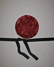 “Io credo profondamente nelle risorse interiori inesauribili del popolo giapponese” -afferma l’artista-, non bisogna dimenticare che il Giappone è risorto da quell’immane devastazione di Hiroshima e” –continua- “la cintura nera esprime appunto la forza incrollabile e l'energia di quel popolo che resiste e combatte, allo stesso tempo essa è un simbolo di lutto per ricordare la tragedia”. L'opera è realizzata con tecnica mista, ho utilizzato del carbone dipinto di rosso e la mia cintura nera personale usata per anni nel Karate.