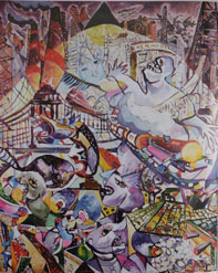 Cosi mi sedetti su una panchina e mi misi impensierito a fissare gli alberi intorno a me e...così piano piano guardando con gli occhi dell’emozione...”L’artista Minnella vide attraverso quelle piccole foglie verdi e la lunga vita di quei tronchi coriacei un “uomo trasfigurato/crocifisso”, legato all’acqua e alla terra con i suoi piedi/radici, l’uomo era diventato albero e viceversa, non si poteva più distinguere dove nasceva uno e dove finiva l’altro, erano pura simbiosi. La donna, “madre-madonna” girata di spalle, senza volto e senza identità chiara, che sostiene l’uomo-albero, nasce afferma il pittore come “ un’idea di speranza, di salvezza” che può avere nei momenti difficili confini incerti, essere nebulosa o sembrare abbandonarci ma il fatto stesso di percepirla può indicare mille percorsi nuovi verso una volontà di rinascita. L’uomo-albero in quel triste momento doveva sperare, alzare lo sguardo verso l’azzurro del cielo e tornare a sognare un futuro migliore per sè e per il pianeta. La tela “Chernobyl” richiama per alcuni aspetti il “Guernica” di P. Picasso. Minnella stesso ci conferma una certa similitudine: “ Picasso aveva espresso lo shock per la distruzione e la desolazione delle guerre, in particolare del bombardamento di Guernica, io ho inteso raffigurare lo shock dell’Europa che si trovava a fronteggiare direttamente sulla propria carne, il disastro nucleare di Chernobyl.