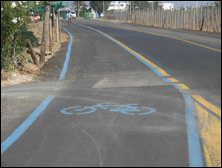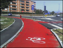 Percorso ciclabile riverniciato ma sempre pericoloso.