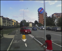 Sembra piuttosto una beffa! Su questa percorso oltretutto si rischia la vita. infatti non essendo segnalato da alcun cartello verticale, succede di continuo che i ciclisti si trovino di fronte un’auto. Se le cose non vengono fatte bene, meglio lasciar perdere! costava troppo un cartello? Oppure un blocco per impedire l’accesso alle vetture?
