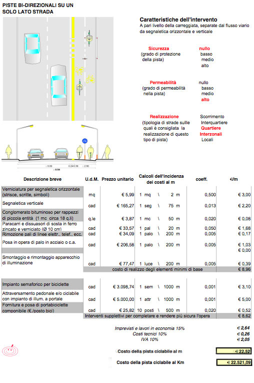Savefregene ha fatto una ricerca per capire in che tipo di categoria rientri il percorso ciclabile lungo circa 300 mt. delineato dalla nostra amministrazione sul lungomare. .Dal dettaglio costi (riferito ad un Km) riportato in basso deve essere decurtato: