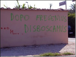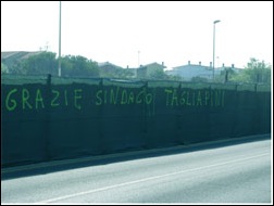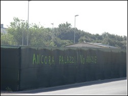 Dopo che è stata distrutta l'ennesima area di macchia mediterranea sul lungomare, sono comparse scritte di protesta sui teloni e su muri, da parte di chi non ce la fa piu' a rimanere zitto di fronte ad un altro strazio ai danni della natura